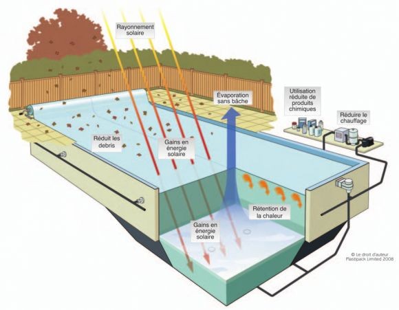 Ses qualités ne sont plus à démontrer. Cette bâche, en fait le complément indispensable de la précédente, est utilisée dès que la température de l'eau a dépassé 15° et permet de chauffer l'eau de la piscine durant la journée et de conserver la température durant la nuit. Appréciable dès le mois de mai ou en septembre-octobre dans le Sud ! Cette bâche est naturellement dotée de toutes les qualités d'une couverture isothermique de base : rétention de la chaleur ; évaporation d'eau limitée ; moindre contamination del'eau par les débris, etc.